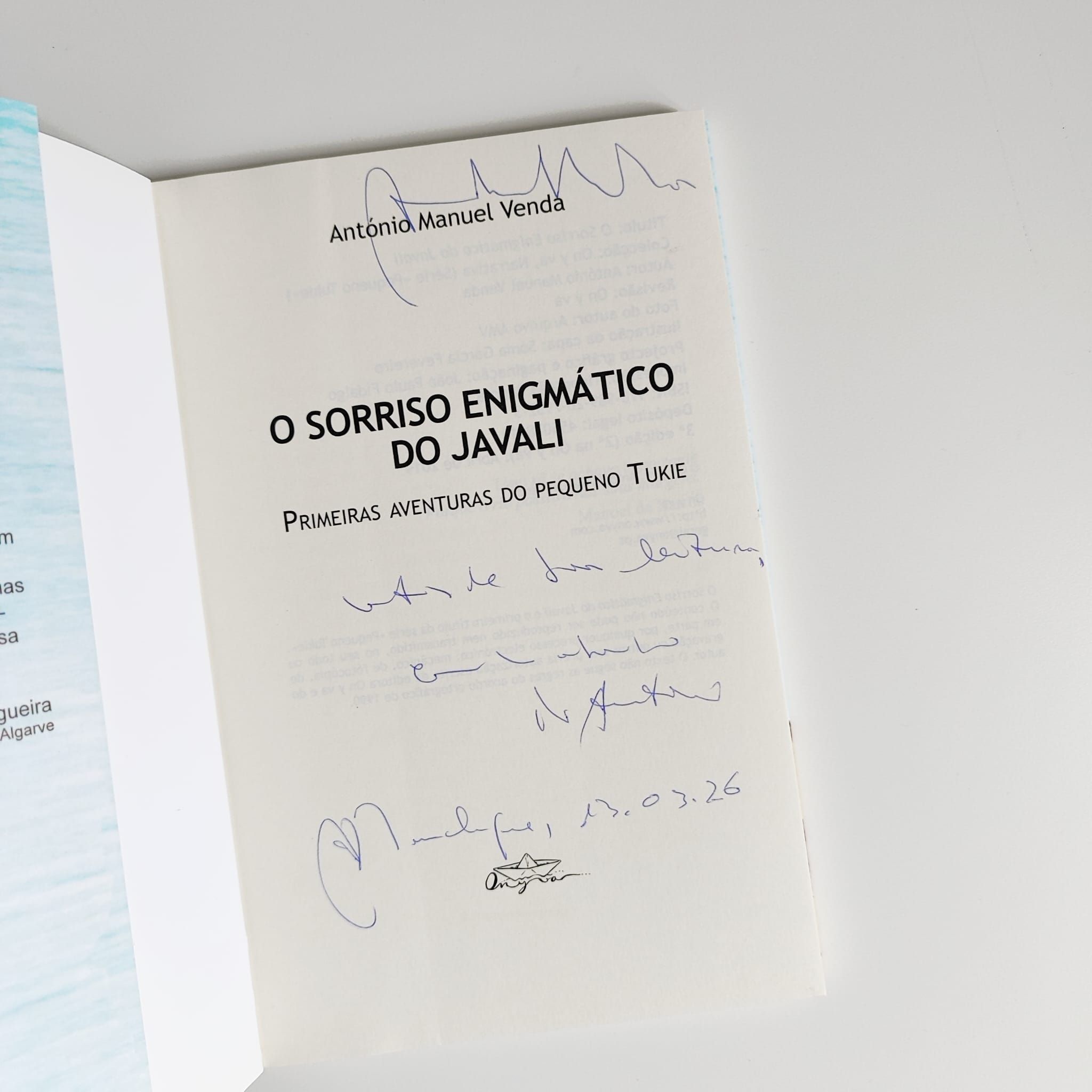 O Sorriso Enigmático do Javali reúne doze aventuras do pequeno Tukie, um menino que vive num monte alentejano com os pais e uma irmã ainda bebé. Cada aventura apresenta um animal diferente que habita os arredores da herdade — o javali, a cobra, a raposa, o melro, entre outros — e que se torna pretexto para momentos de descoberta, sabedoria e encanto. O pai de Tukie, sereno e conhecedor da natureza, é o guia silencioso destas histórias, onde o quotidiano rural se transforma em magia. Um livro de contos para todas as idades, sobre a infância, a natureza e o olhar curioso de quem descobre o mundo.