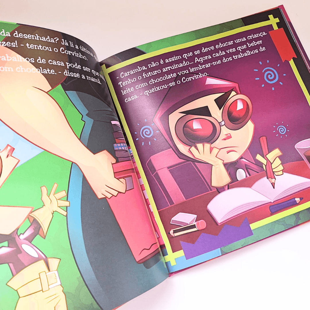 Os heróis também foram crianças e o Corvo não é exceção! Descobre a infância de Vicente antes de se tornar o maior (e único) super-herói de Lisboa. Bruxas maléficas, poções nojentas, com xixi de grilo, unhas de rinoceronte vesgo, puns de elefante... e muito mais, era o que a bruxa queria que o Corvinho comesse! Que nojo... ou era mesmo a bruxa? Seja como for, são mais umas tantas divertidas histórias do nosso herói!