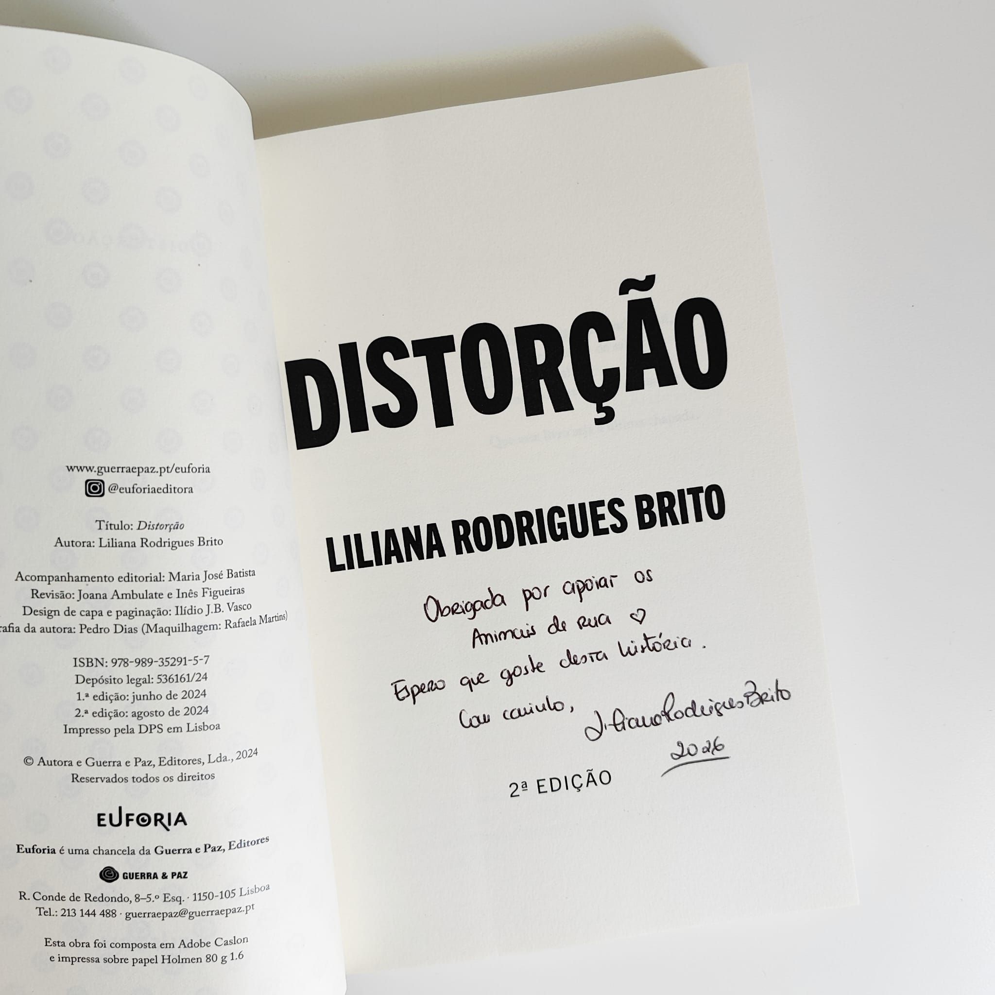 Parecia a história de amor perfeita: Olívia reencontra a sua paixão da faculdade, Dário Amorim, e pensa que essa poderá ser uma oportunidade para recomeçarem onde ficaram e construírem uma vida felizes juntos. Agora, têm um grupo de amigos unido, carreiras promissoras e uma casa onde planeiam começar uma família. O futuro não podia ser mais brilhante. No entanto, ao mesmo tempo que um cadáver é encontrado na Feira do Livro de Lisboa e a Polícia Judiciária começa a investigar um potencial homicídio, o equilíbrio desta relação começa a desabar numa espiral de luz e escuridão. E, enquanto a polícia desenvolve a sua teoria em relação a este crime hediondo, a vida perfeita de Dário e Olívia é ameaçada. Terão eles algo a esconder? Neste seu primeiro romance, Liliana Rodrigues Brito cria uma teia complexa de mundo interior e exterior: o que será real e o que será Distorção?